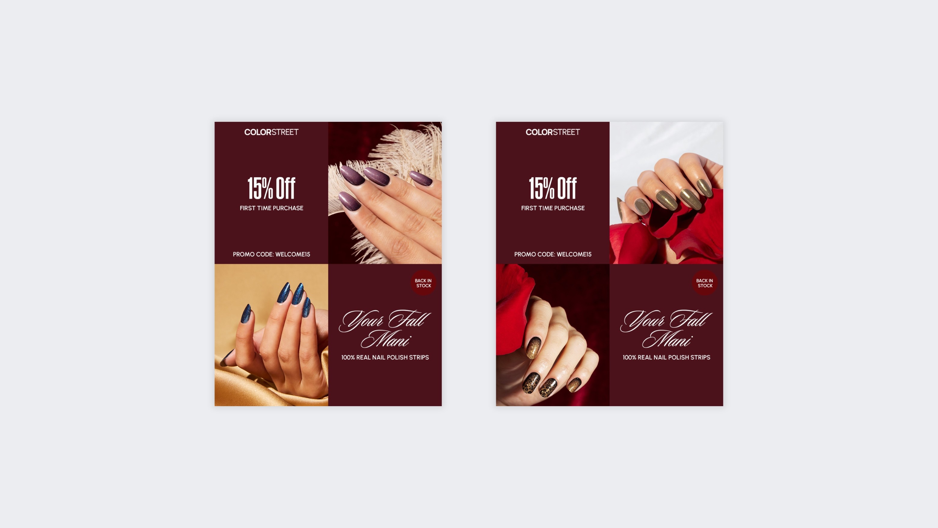 Designed engaging homepage main banners to promote new seasonal nail collections. Integrated visual storytelling, brand identity, and user experience principles to communicate clear product messaging and strengthen overall brand presence. Focused on balanced composition, strong visual hierarchy, and impactful brand visuals to increase customer engagement.